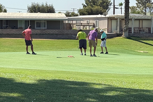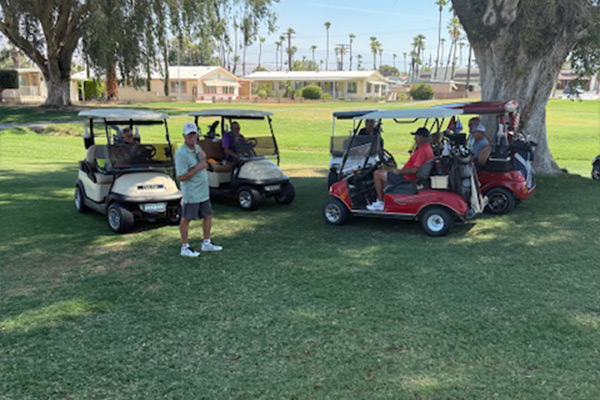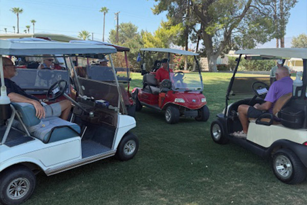 Meeting in the shade after the Wednesday Scramble.